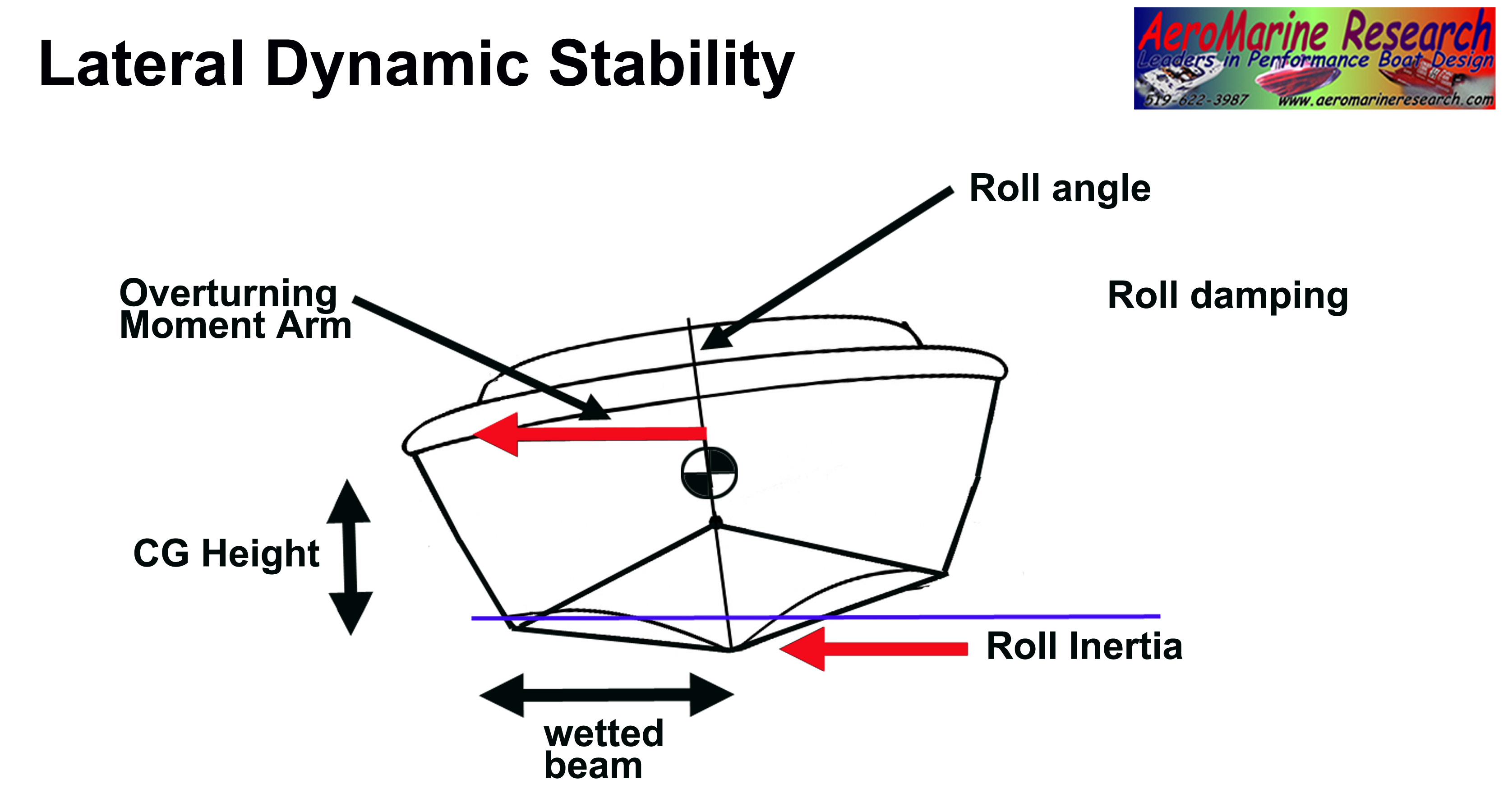 What Is Lateral Dynamic Stability? So, lateral stability can not determined solely by static balance (which is what most naval analysis software does). A hull may have positive restoring stiffness and still be dynamically unstable if roll energy persists or amplifies as speed increases. This distinction explains why some boats appear stable at low speed yet develop chine walk or violent roll oscillations at higher speeds. Dynamic lateral stability is governed by three interacting factors: ·