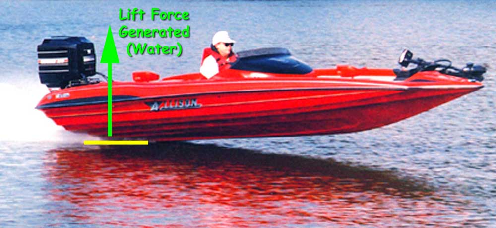 to hydrodynamic (water lift from sponsons). On a pad-Vee hull, the "hump zone" is the speed at which the amount of lift changes from mostly the vee surfaces to mostly lift from the pad surfaces.