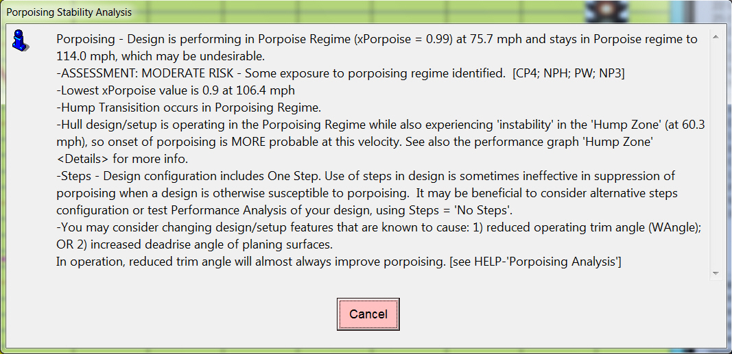 Making it Easy: For each of the Stability measures, the software does ALL the work behind the scenes, and gives both DETAILS and also gives the 'GOOD/NO GOOD' summary of all considerations. These unique presentation formats are displayed for: •Longitudinal Dynamic Stability Analysis (LongStab Index) •Lateral Stability Analysis (LatStab Index) •Porpoising Analysis (xPorpoise Index) In the TBDP©/VBDP© Stability analysis, we examine the absolute values of these indicators, rate-of-change (derivative) of the indicators, local trending and global trending of the indicator - all toward identifying the real-world status of lateral dynamic stability. Here's How we Do