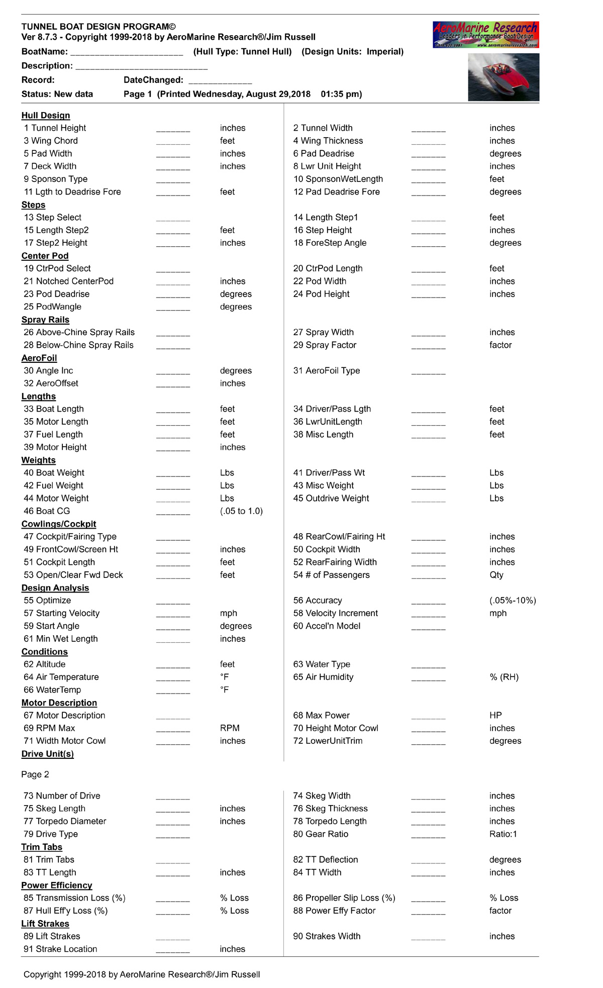 | You can collect and record your hull design dimensional and setup information on the Data Collection data sheet. Download your own FREE copy here. |